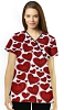 Red hearts Printed Top Mock Wrap With Black Piping 3 Pocket Half Selves in POPLIN FABRIC (65% POLYESTER, 35% COTTON)