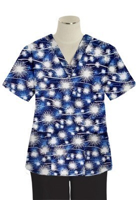 Blue Fire Work Print Top v neck 2 pocket half sleeves in POPLIN FABRIC (65% POLYESTER, 35% COTTON)
