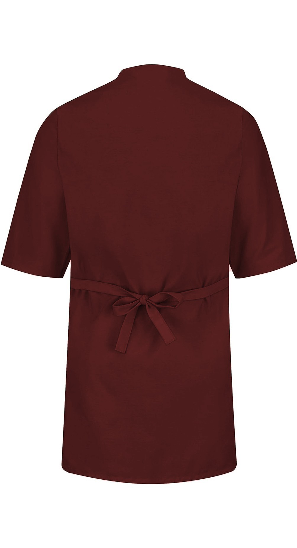 POPLIN UNISEX COLLARLESS BUTCHER'S WRAP WITH BACK TIE ABLE, WITHOUT POCKET, KNEE LENGTH, 3/4 SLEEVES FOR FOOD INDUSTRY.  (35%COTTON 65%POLYESTER) , Reversible tie closure. Knee length Half sleeve. Length starting from 36". Poplin Fabric Weight 4.5 OZ One of the best selling style among Food Processing Industry collection. AVAILABLE SIZES XXS-14X. Length Available 36", 38", 40" and 42".