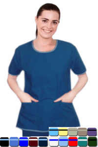 Home :: SCRUB SETS :: FASHIONABLE SETS :: Round neck with border piping style 5 pocket set half sleeve (top 2 pocket with bottom 3 pocket) in 65% Polyester 35% Cotton