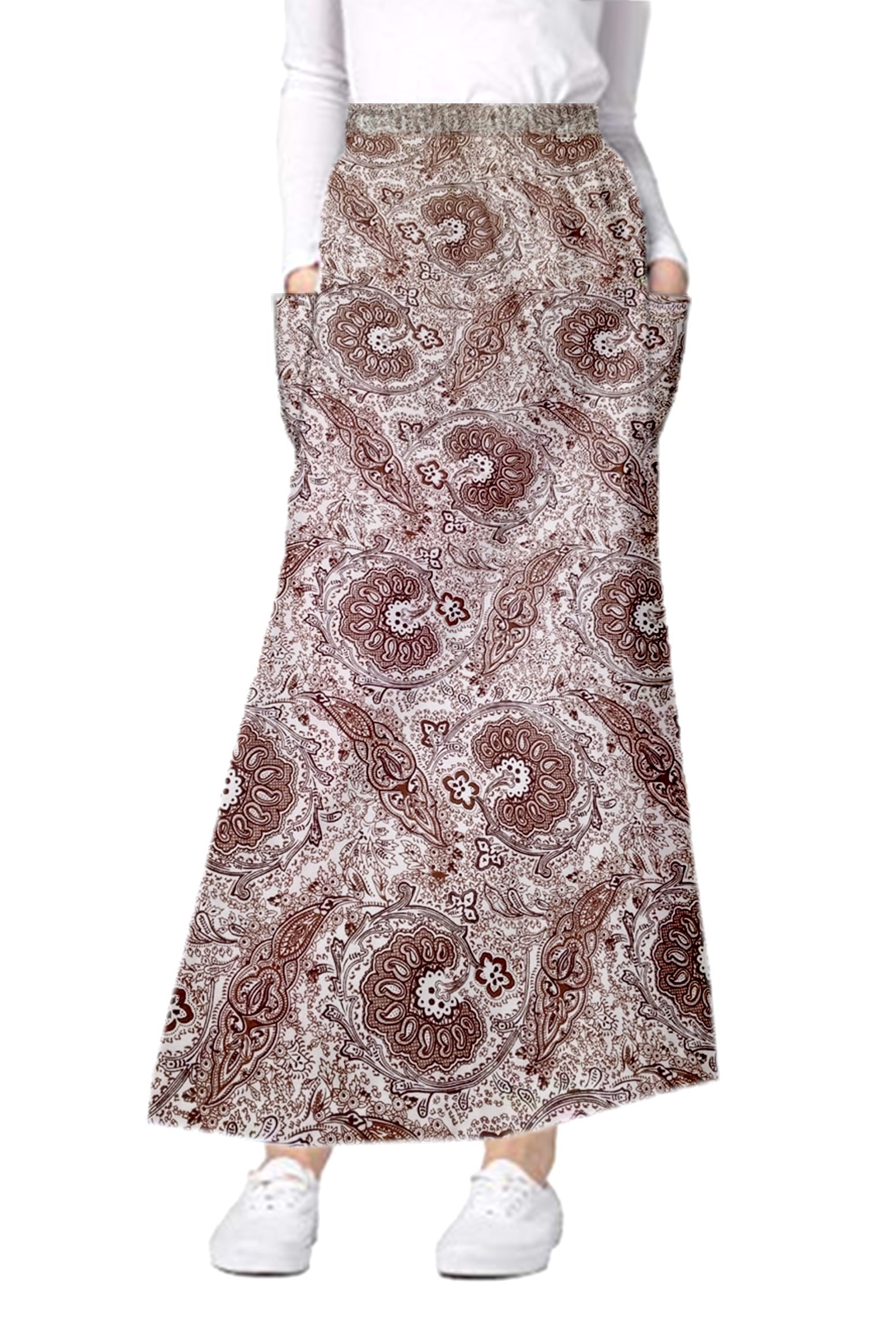 Cargo pockets ladies skirt A Line Full Elastic waistband ladies skirt in Brown Paisley Print