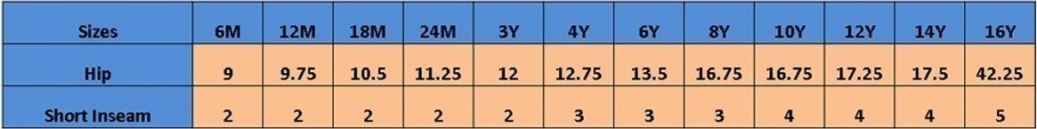 SIZES AVAILABLE 6 Months-15 Years