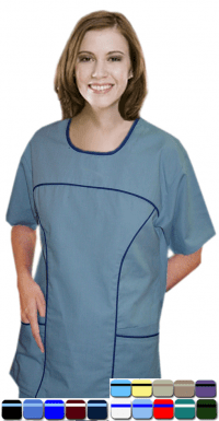 Home :: SCRUB TOPS :: FASHIONABLE TOPS :: Poplin Top 4 pocket scoop neck half sleeve contrast piping (65% Polyester, 35% Cotton)